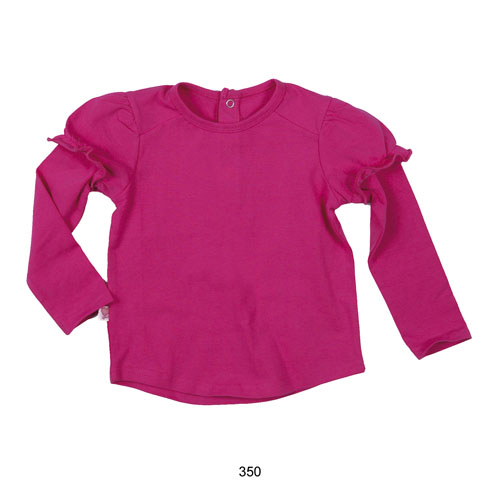 Süßes Mim-Pi Langarmshirt pink mit gepufften Ärmeln im Lagenlook, mit Druckknopfleiste im Rücken.