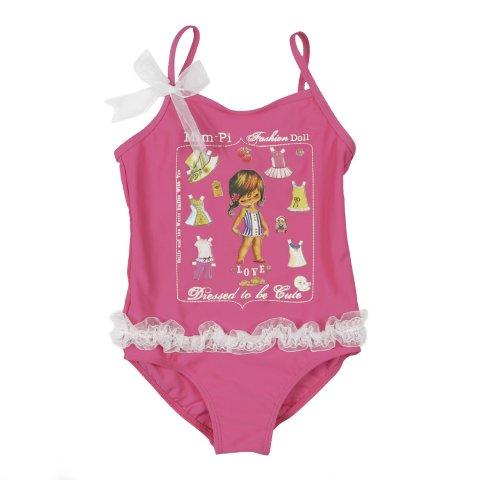 Schöner Badeanzug von Mim-Pi in pink mit Mädchen-Print und schönen Details.