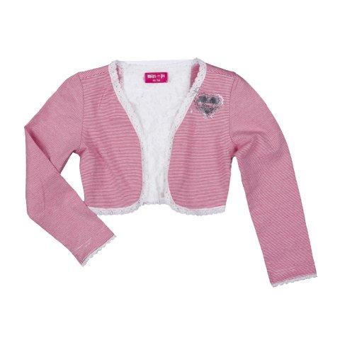 Schönstes Bolero von Mim-Pi in pink-ecru mit feinen Streifen und einer Spitzenborte umrandet, auf der Rückseite ein breiter Spitzenbesatz, einfach ein Traum.