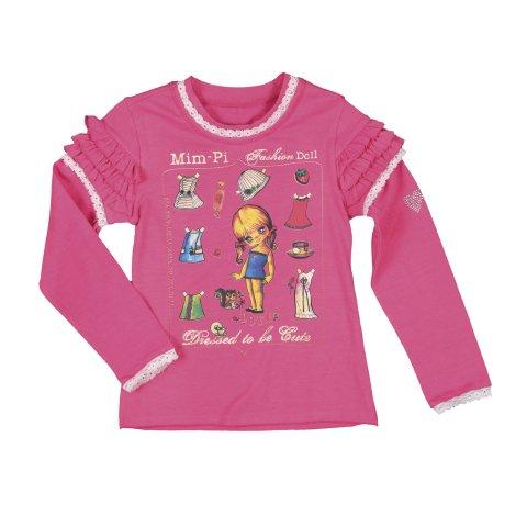 Super schönes Langarmshirt von Mim-Pi mit Print in pink, im Layerlook, gepuffte Ärmelchen mit Rüschen, Halsauschnitt und Armabschluss mit Mäusezähnchenspitze eingefasst.