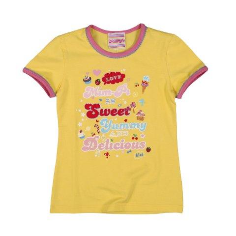 Freches T-Shirt von Mim-Pi in gelb mit Print/Schriftzug und Kontrastbündchen an Hals und Armabschluss.