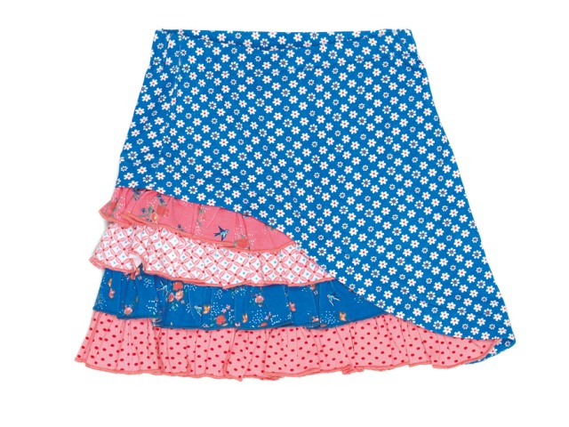 Einmaliger Rock von Mim-Pi im Muster- und Farb-Mix, 2-Lagig, oberer Teil asymetrisch verlaufend, unterer Teil mehrlagig mit Rüschen - Frech und sehr schön anzuschauen!