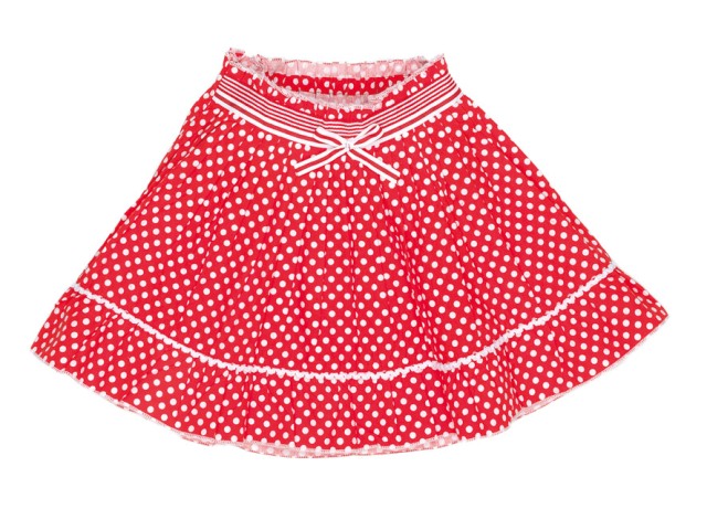 Traumhafter Rock von Mim-pi in rot, im Punkte-Design, weitschwingend, Gummizugbund und eine Zier-Schleife vorne.