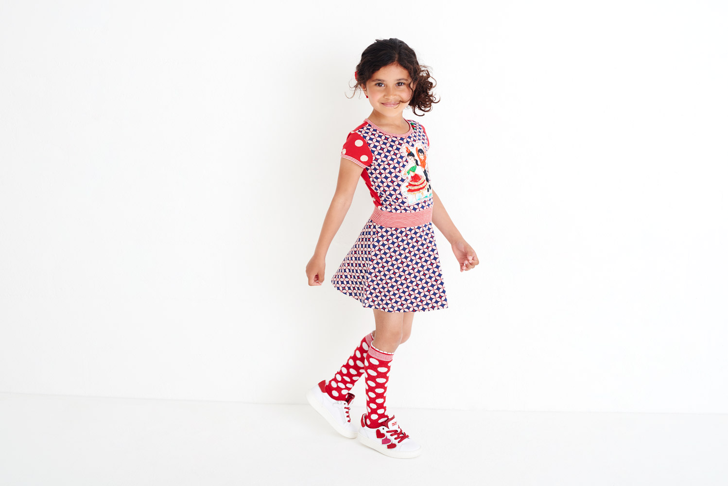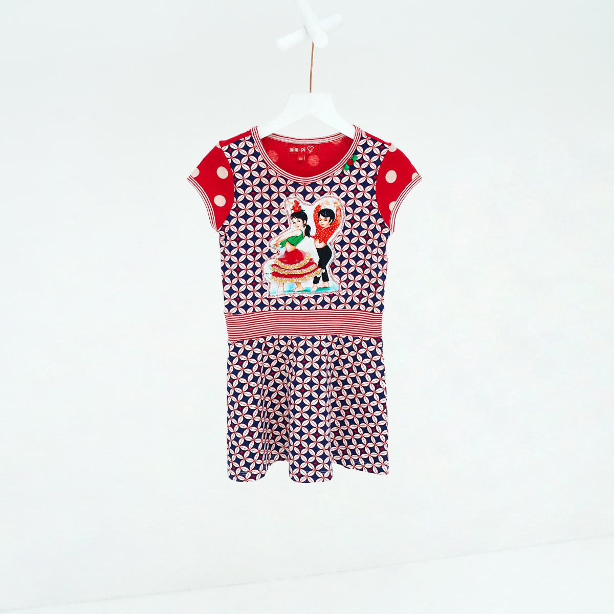 Mim-Pi Kurzarm-Kleid Flamenco-Tänzer rot-weiß-blau