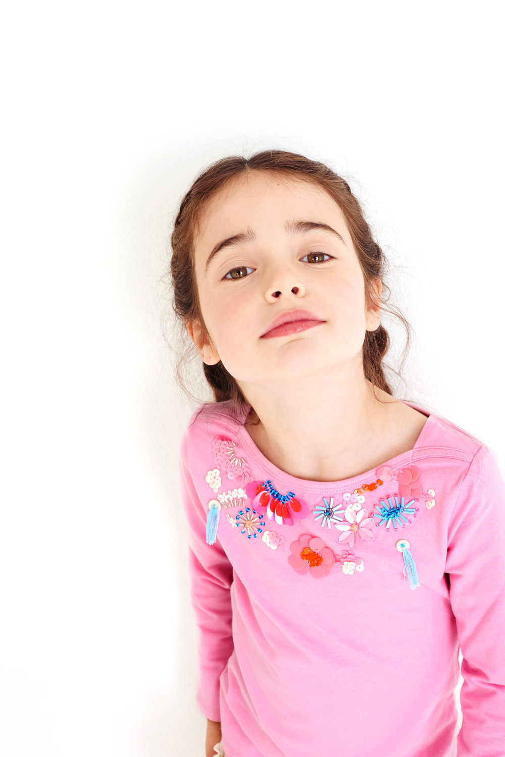 Rosa Langarm-Shirt aufwendig bestickt und von Hand verziert durch Pailletten, Perlen und Steinchen.