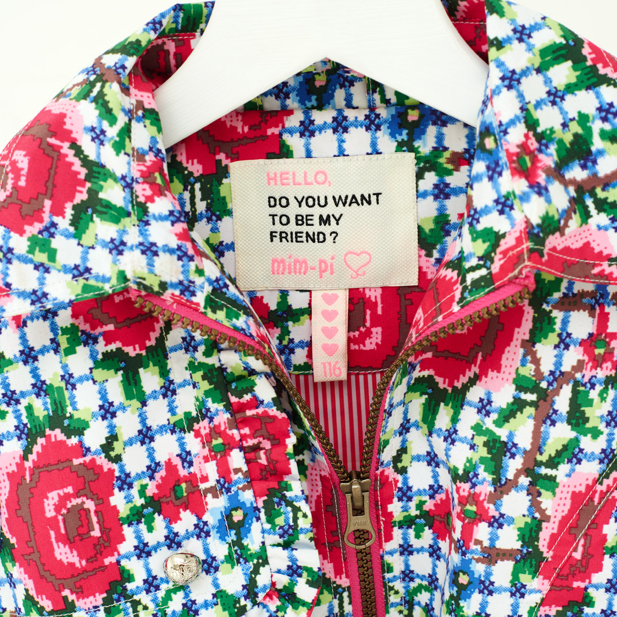 Superschöner Sommermantel im Spanish-Rose-Print mit Reißverschluss, wasserabweisend, mit zwei seitlichen Eingrifftaschen und mit Gürtelband in der Taille. Innen mit einem rot-weiß gestreiften Futter gefüttert! Der Mantel hat eine sehr gute Passform!