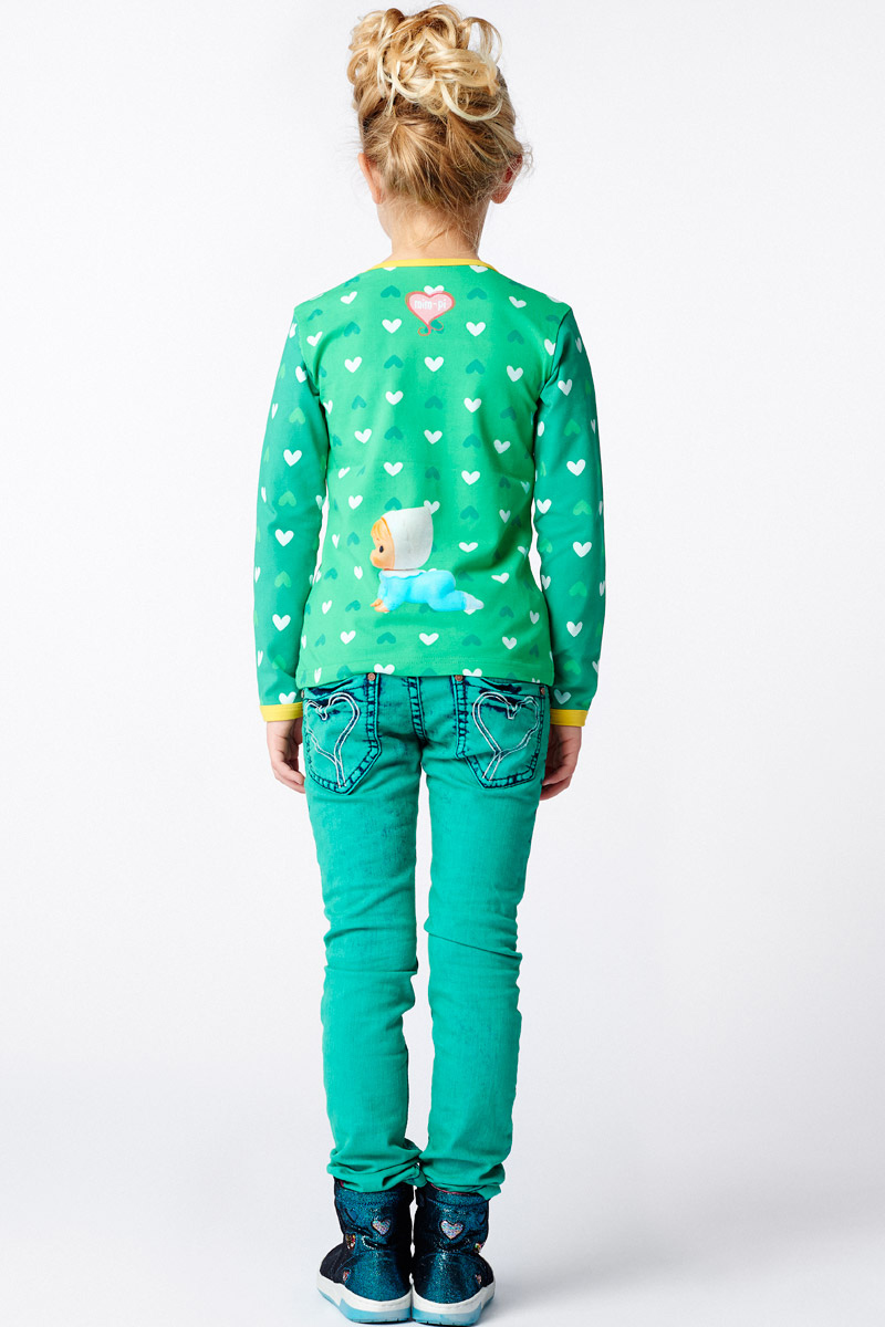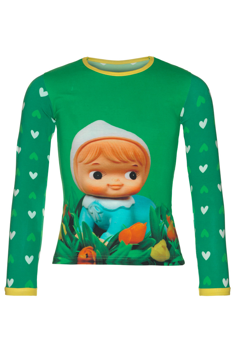 Supersüßes Langarm-Shirt/Longsleeve von Mim-Pi mit Püppchen Print und Herzchen Ärmeln - hier ist auch die Rückseite ein Highlight!