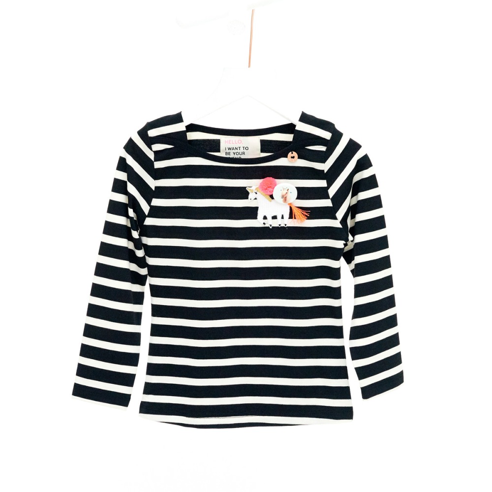 Tolles Langarm-Shirt/Longsleeve von Mim-Pi im Streifenlook mit Einhorn, schwarz weiß.