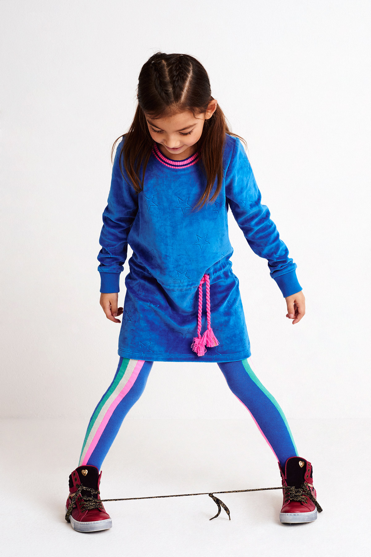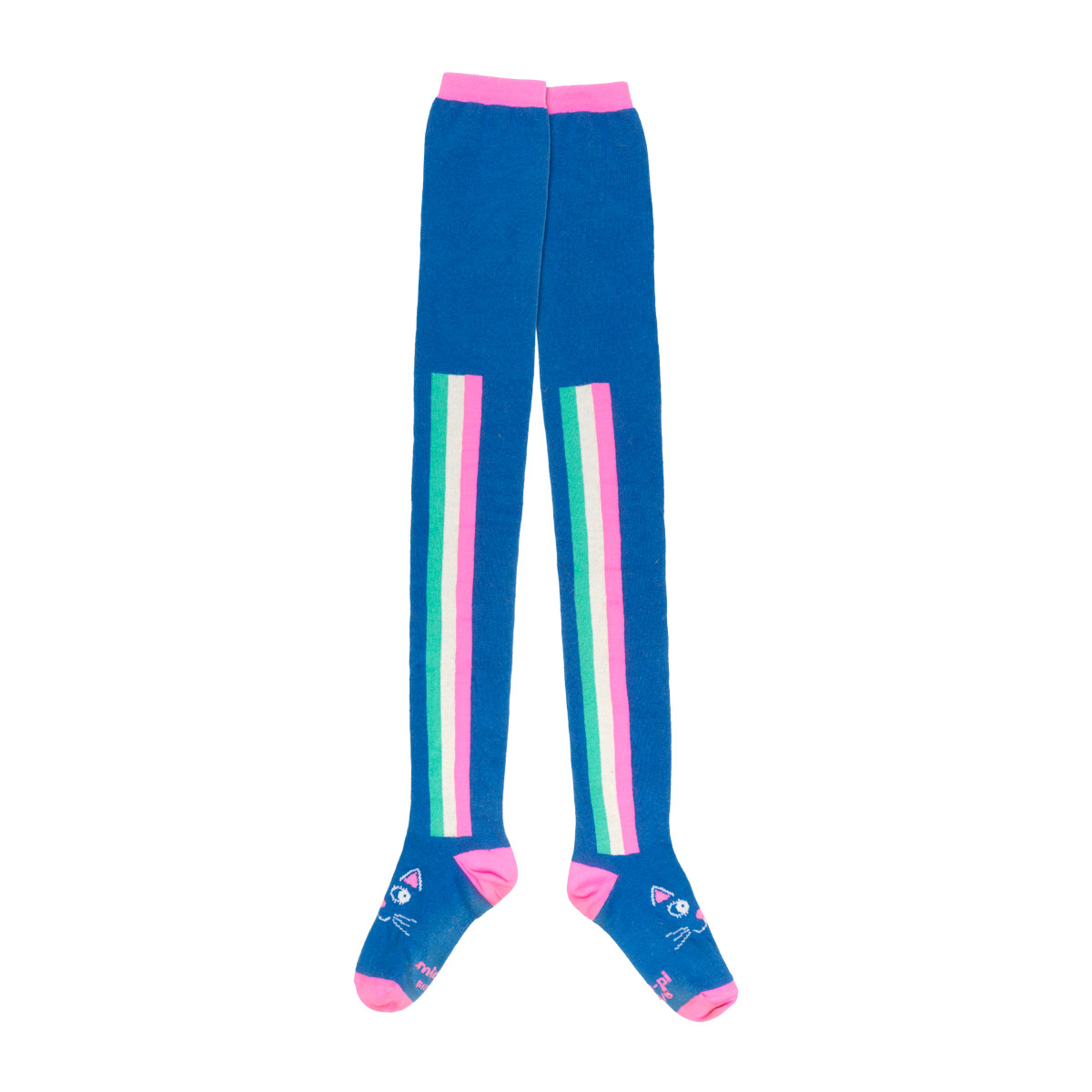 Witzige Strumpfhose von Mim-Pi in blau mit Rallystreifen.