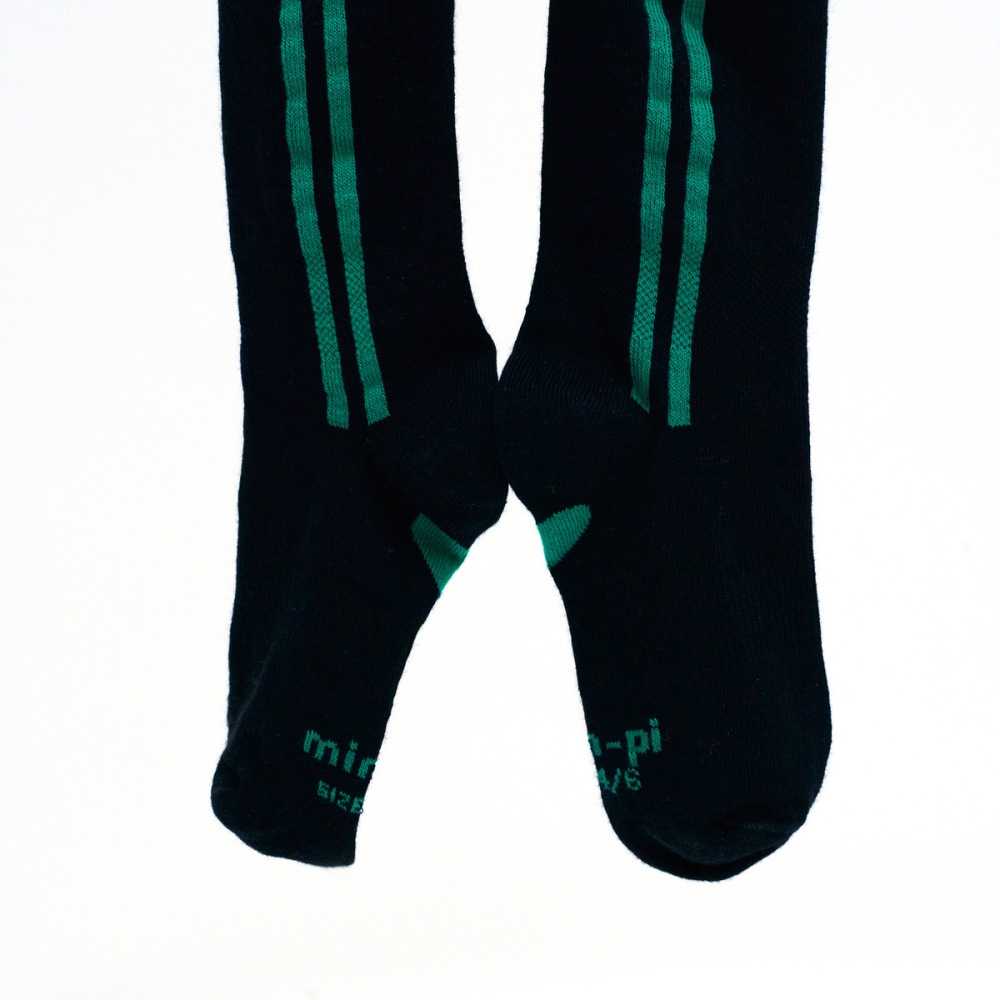 Schöne Strumpfhose von Mim-Pi in schwarz mit seitlichen Rallystreifen in grün.