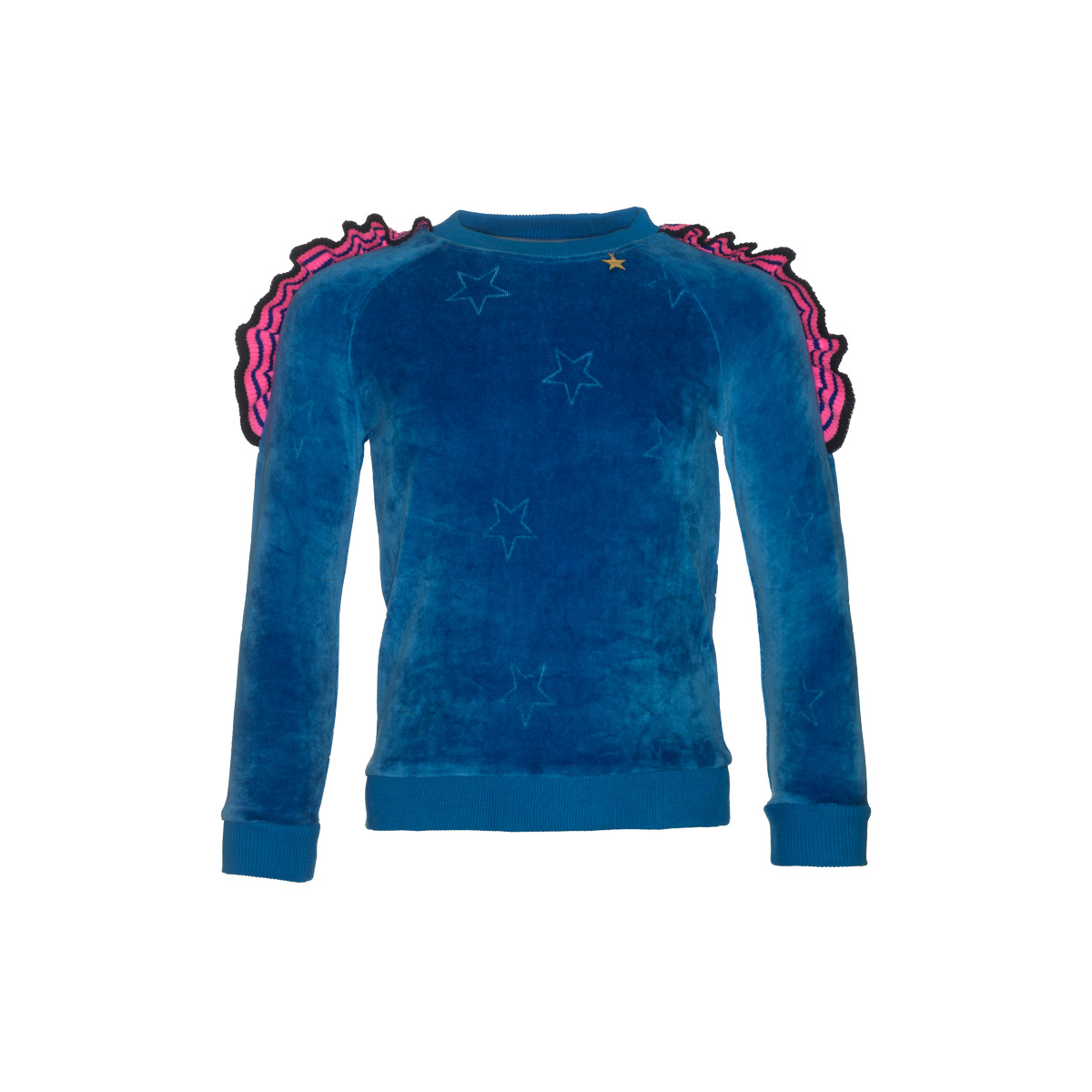 Exklusiver Nicki Pullover von Mim-Pi in einem traumhaften blau mit witzigen Details.