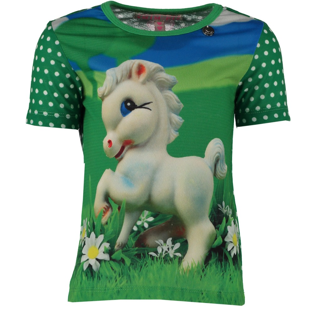 Himmlisches T-Shirt von Mim-Pi mit süßem Einhorn Front- und Rücken-Print, Punkte-Design.