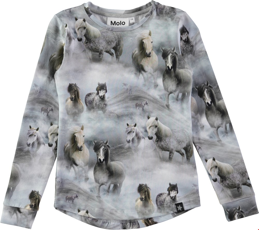 Schönstes Langarm-Shirt von Molo mit wunderschönem Pferde-Foto-Print allover.