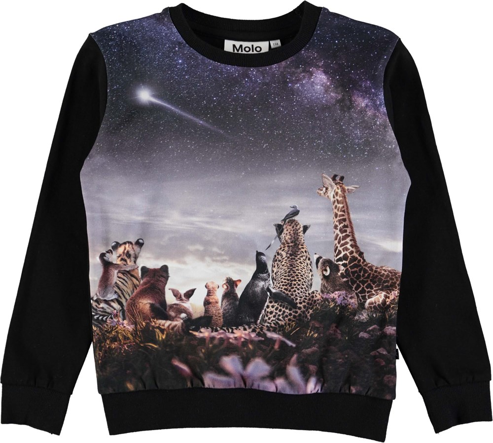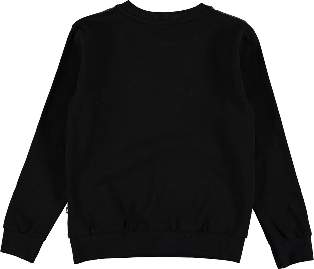 Cooles schwarzes Sweat-Shirt/Langarm-Shirt von Molo, Vorderseite mit wunderschönem Print.