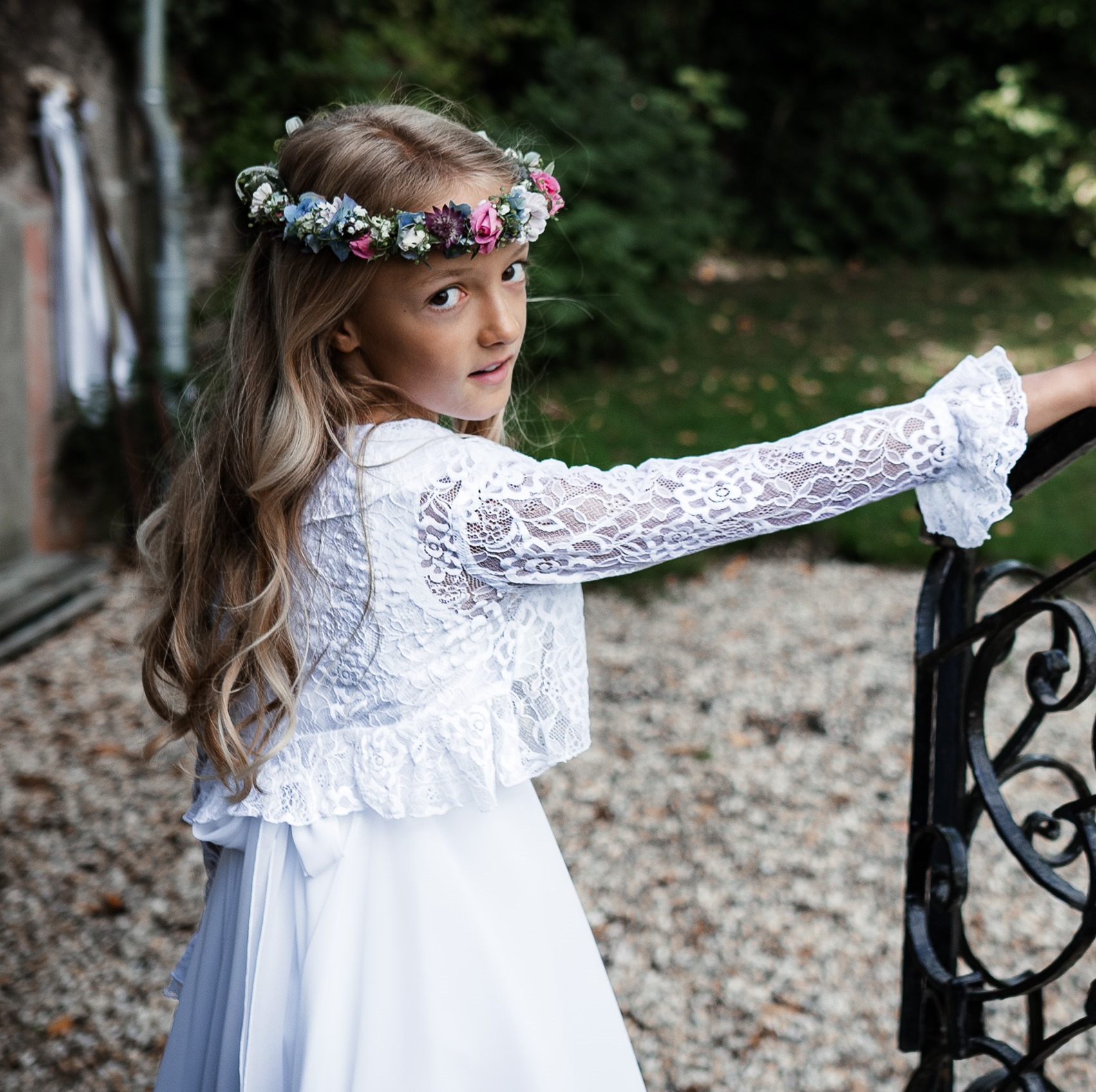Ein Bolero in absolut feinem Spitzenstoff. Hübsche Volants an Saum und Armabschlüssen..
