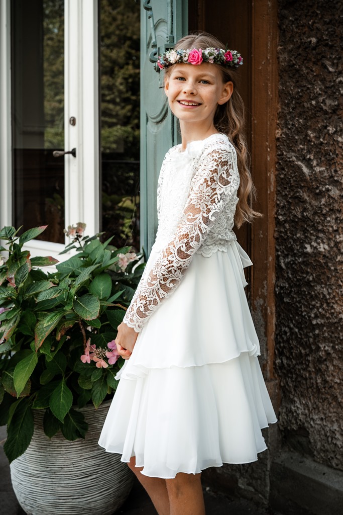 Hier bieten wir Ihnen ein Kommunionkleid bzw. festives Kleid der Extraklasse aus dem Hause Monny zum Verkauf an.