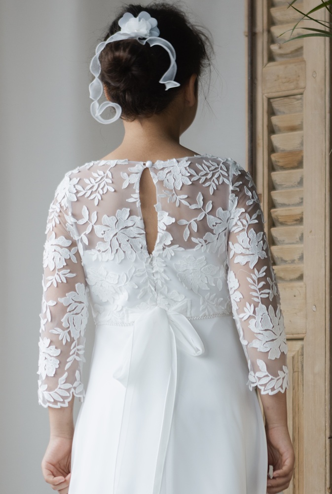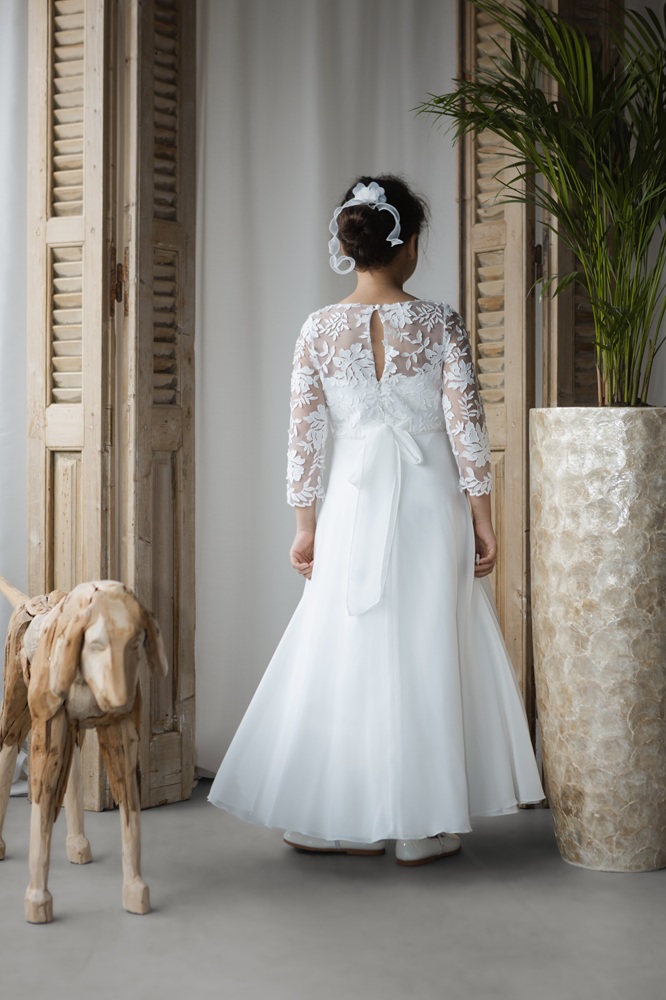 MONNY Kommunionkleid KANT CREPE lange Arme 26-06 lang ecru