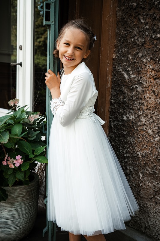Hier bieten wir Ihnen ein Kommunionkleid bzw. festives Kleid der Extraklasse aus dem Hause Monny zum Verkauf an.