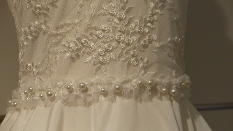 Exklusives Kleid mit vielen schönen Details im Vukohila-Style - hinten länger, das Oberteil ist aus Satin mit wunderschöner bestickter Spitze überzogen. Eine sehr edle Tüll-Perlen-Borte ziert die Taille. Reizende Rückenschnürung sorgt für optimalen Sitz. Mit Reissverschluss zum Schließen. Das Rockteil aus edlem Taft ist ausgesprochen exklusiv gearbeitet. Mehrlagiger feiner Tüll verleiht dem Kleid einen optimalen Stand. Unterroch aus Baumwolle.