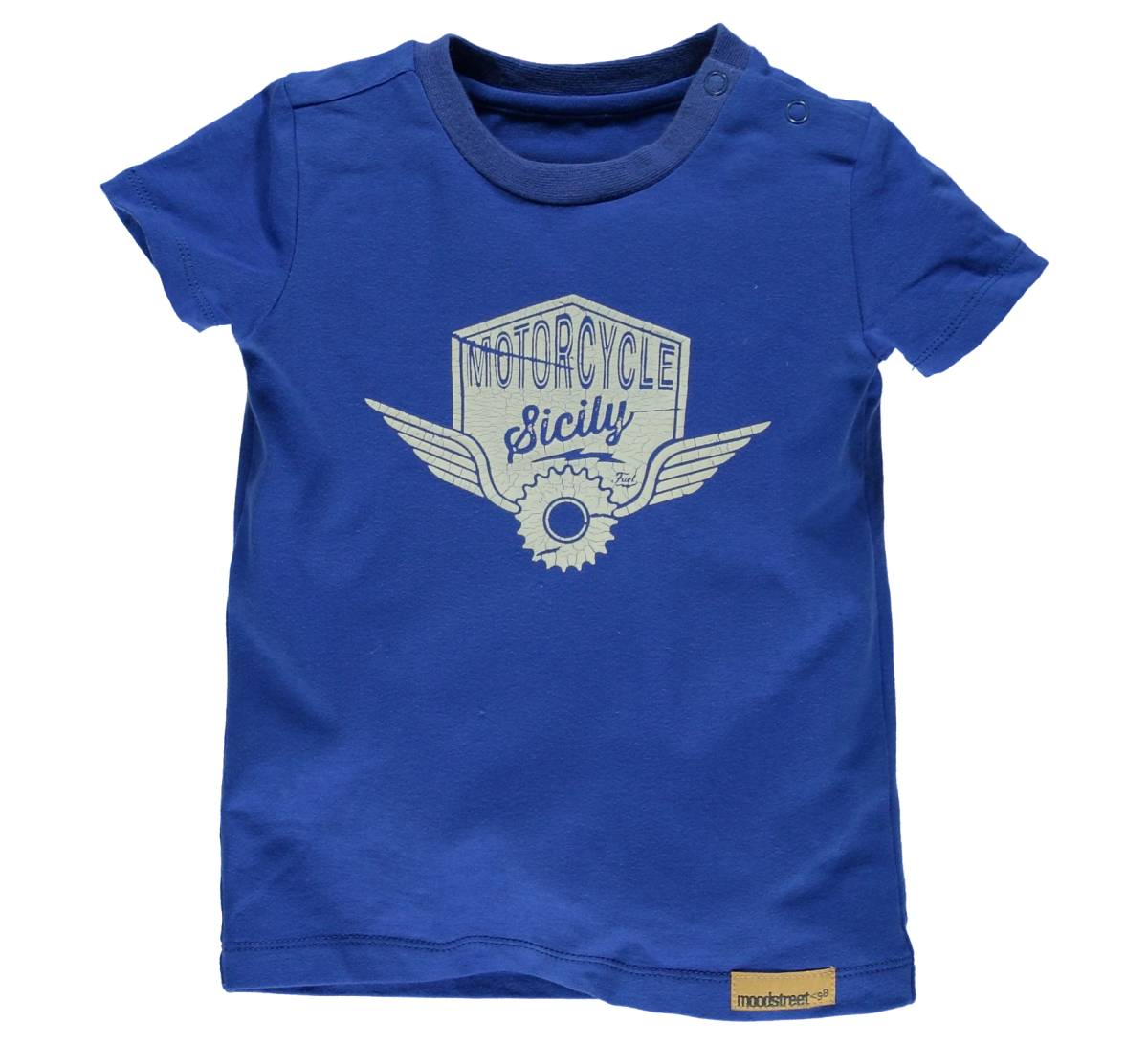 Schönes T-Shirt von Moodstreet in cobalt, cooles Front-Print, an der Schulter mit zwei Druckknöpfen.