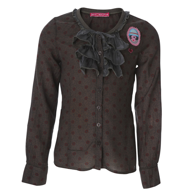 Supersüße, traumhafte Bluse von Muy Malo, vorne mit Knöpfen zu schließen, Frauenkopf-Patch, am Halsausschnitt mit Rüschen, auf der Rückseite ist die Bluse durch ein Band mit Schnalle weitenregulierbar! Diese Bluse ist sehr aufwendig im Design und kann je nach dem Frech oder auch Schick getragen werden!! Ein muss für den Kleiderschrank!!