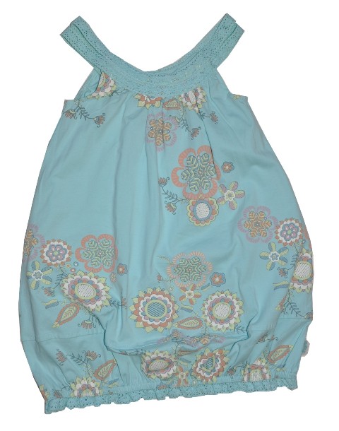 Witziges Ballon-Kleid/Hängerchen von Paglie mit großen Blumen, in Pastell, Träger aus schöner Spitze genauso wie der Saum.