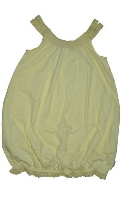 Witziges Ballon-Kleid/Hängerchen von Paglie in pastellgelb, Träger aus schöner Spitze genauso wie der Saum.