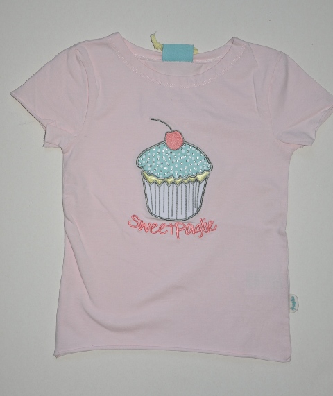 Süßes T-Shirt von Paglie in light rose mit Cup Cake-Stickerei und Strasssteinen.