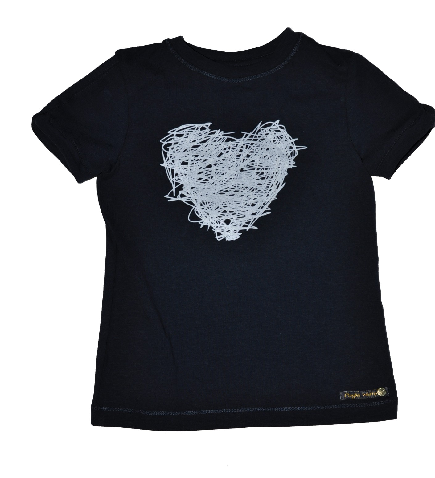 Süßes T-Shirt von Paglie in navy blue mit weißem Herz-Print.
