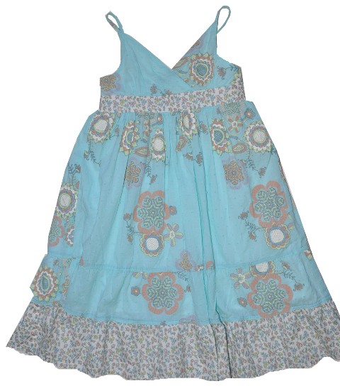 Himmlisches Träger-Kleid von Paglie mit Blumen allover, Pastellfarben, verstellbare Träger, am Rücken gesmogt, 2-Lagig, die obere Lage hat am Saum eine Rüschenreihen.