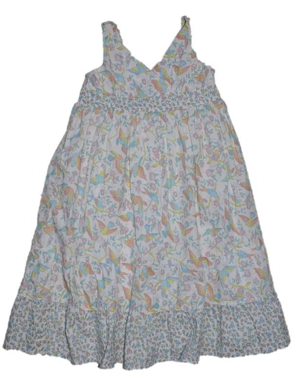 Himmlisches Träger-Kleid von Paglie mit Blumen und Vögeln allover, Pastellfarben, verstellbare Träger, am Rücken gesmogt, 2-Lagig, die obere Lage hat am Saum eine Rüschenreihen.