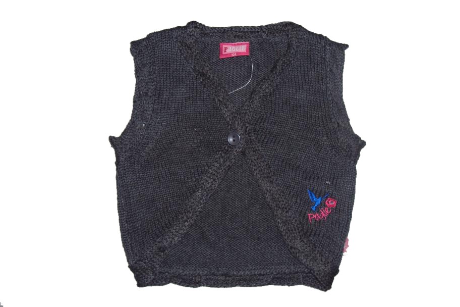 Hübsche Strickweste von Paglie in dunkelgrau vorne mit kleiner Logo-Stickerei und einem Knopf zum schliessen.