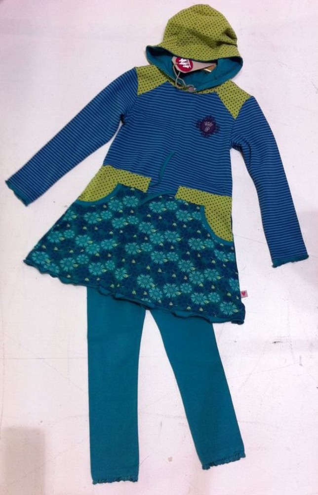 Hübsche Basic Legging von Paglie in jade, am Beinabschluss mit Spitze.