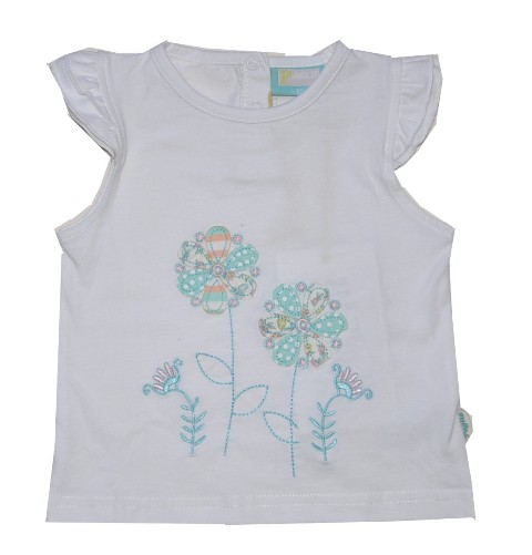 Himmlisches T-Shirt von Paglie Mini in weiß mit Blumen-Stickerei und süßen Flügel-Ärmchen. Am Rücken mit zwei Druckknöpfen.
