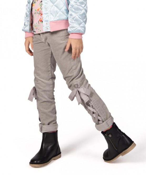 Paper Wings Hose aus 95% Bio-Baumwolle und 5% Elastan. Die Hose ist aus weichem Samt gearbeitet mit angesagten Satin-Band-Schnürungen an den Hosenbeinen. Bundweite innen verstellbar.