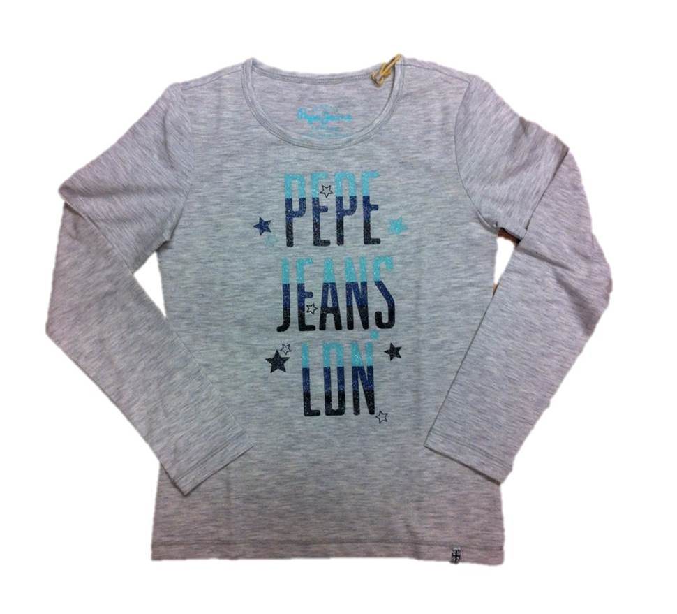 Super Langarm-Shirt/Longsleeve von Pepe Jeans London in hellgrau mele mit glitzer Logo-Front-Print, Rundhals-Ausschnitt!