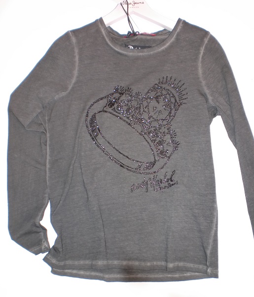 Supercooles Langarm-Shirt/Longslseeve by Pepe Jeans London in dunkelgrau mit dunklem dezenten glitzer-Front-Print, am Rücken mit großem Spruch Print - und cooler Waschung.