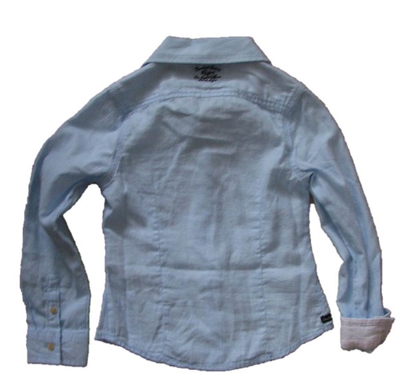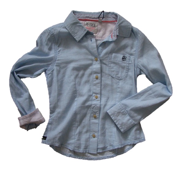 Lässiges Langarm-Hemd / Bluse von Petrol in hellblau, taillierter Schnitt, Knopfleiste vorne, eine Brusttasche, kleine Stickerei am Nacken/Rücken. Als Hemd oder auch offen getragen, lässig, als Jackenersatz im Sommer ein Hit! Aus luftig leichter Sommerbaumwolle!