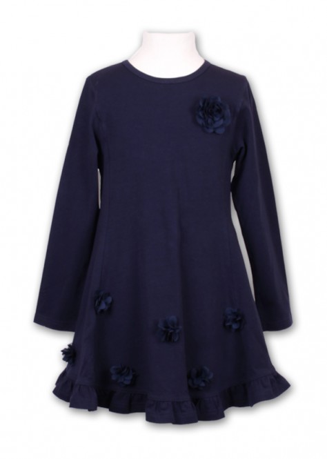 Bildschönes Jersey-Kleid von Pezzo D´oro in navy, weitschwingend, am unteren Abschluss mit Blümchen geschmückt, liebevoll im Design.