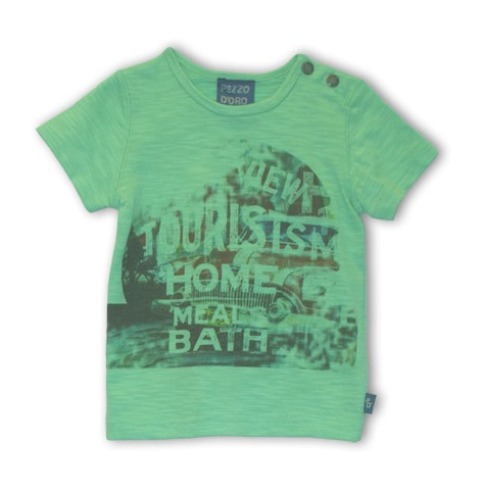 Super Basic T-Shirt von Pezzo D´oro in grün, Front-Print, leichtes Material angenehm zu tragen - zwei Druckknöpfe an der Schulter erleichtern das an- und ausziehen.