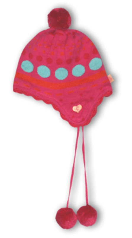 Bezaubernde Winter-Mütze von Pezzo D´oro in pink mit Muster und Bommeln, rund um den Saum mit Häkelspitze, verdeckt schön die Ohren und ist mit Bändern bindbar. Super angenehmes weiches Material, innen gefüttert!