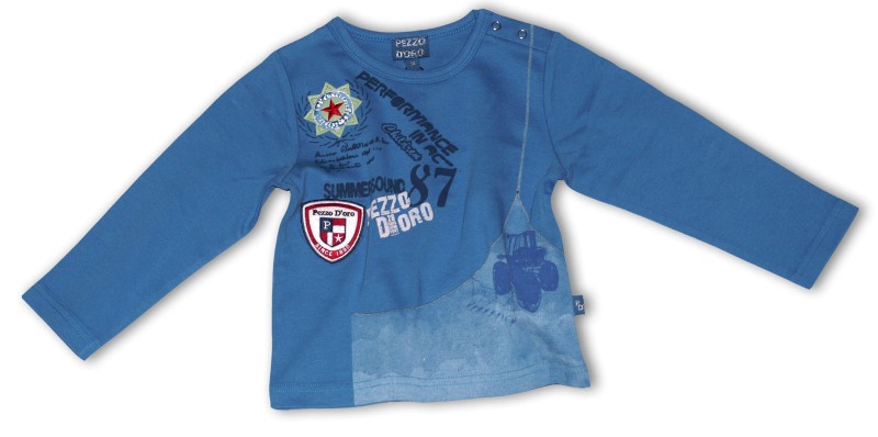 Super Langarm-Shirt von Pezzo D´oro Mini in electric blue mit Print und Patches, am Halsausschnitt gibt es zwei Druckknöpfe. Super angenehmes weiches Material ideal für die kleinen Jungs!
