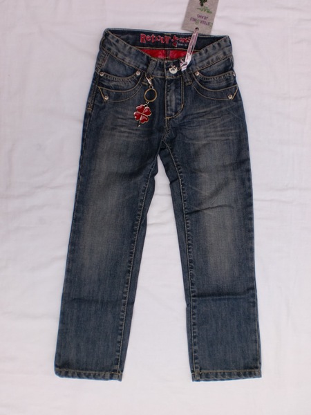 Trendige Retour Jeans Feline, 5-Pocket-Style, mit schöner Waschung, zwei Taschen vorne, zwei Popotaschen mit Retour-Druckknopf, Bundweite innen regulierbar, mit Glücks-Kleeblatt-Schlüsselanhänger.