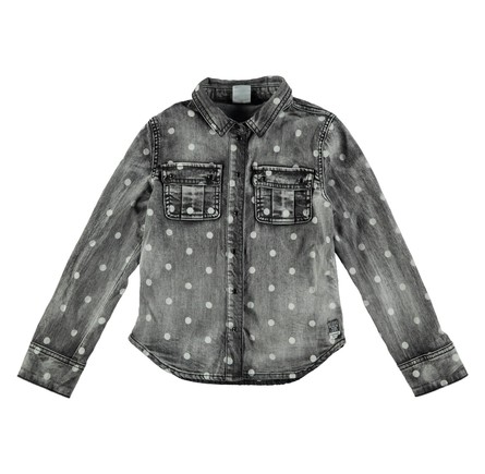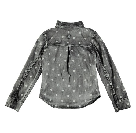 Witzige Jeans-Bluse von RETOUR im Punkte-Look mit wunderschönen Druckknöpfen, Brusttaschen.