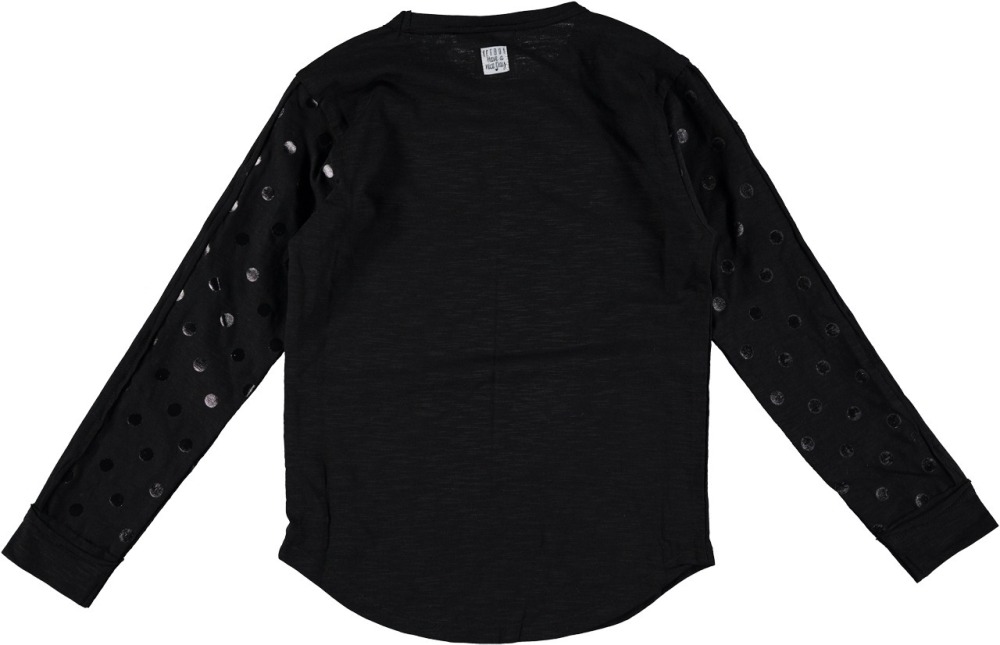 Besonderes Langarm-Shirt von RETOUR mit Flocken-Print und dezenten Punkten allover an den Armen und Schulter.