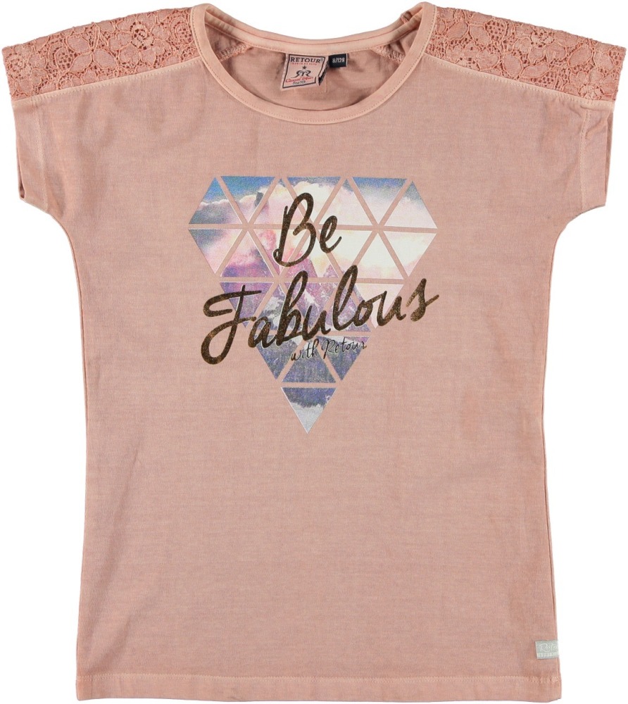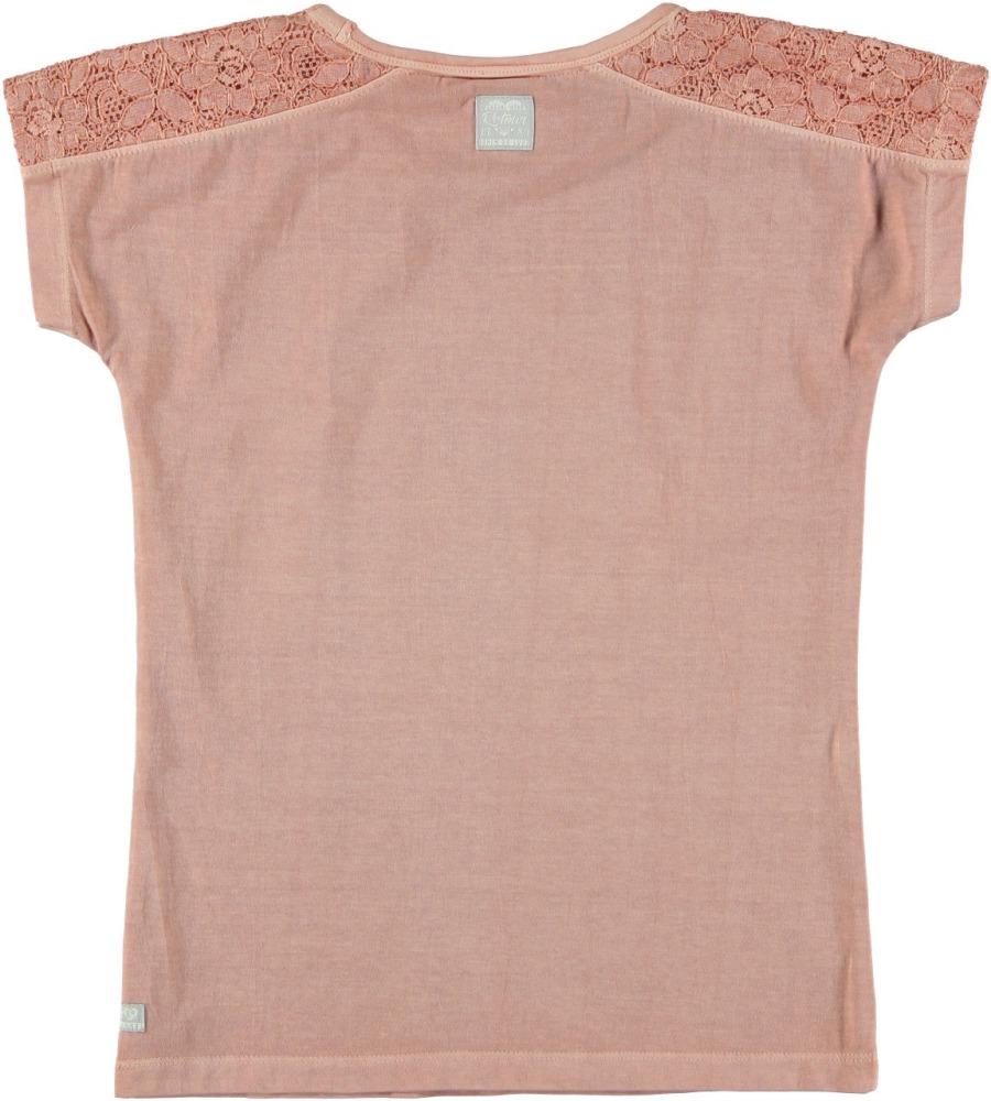 Stylisches T-Shirt von RETOUR in rusty mit Spitzen-Detail an der Schulter und mit Front-Print.