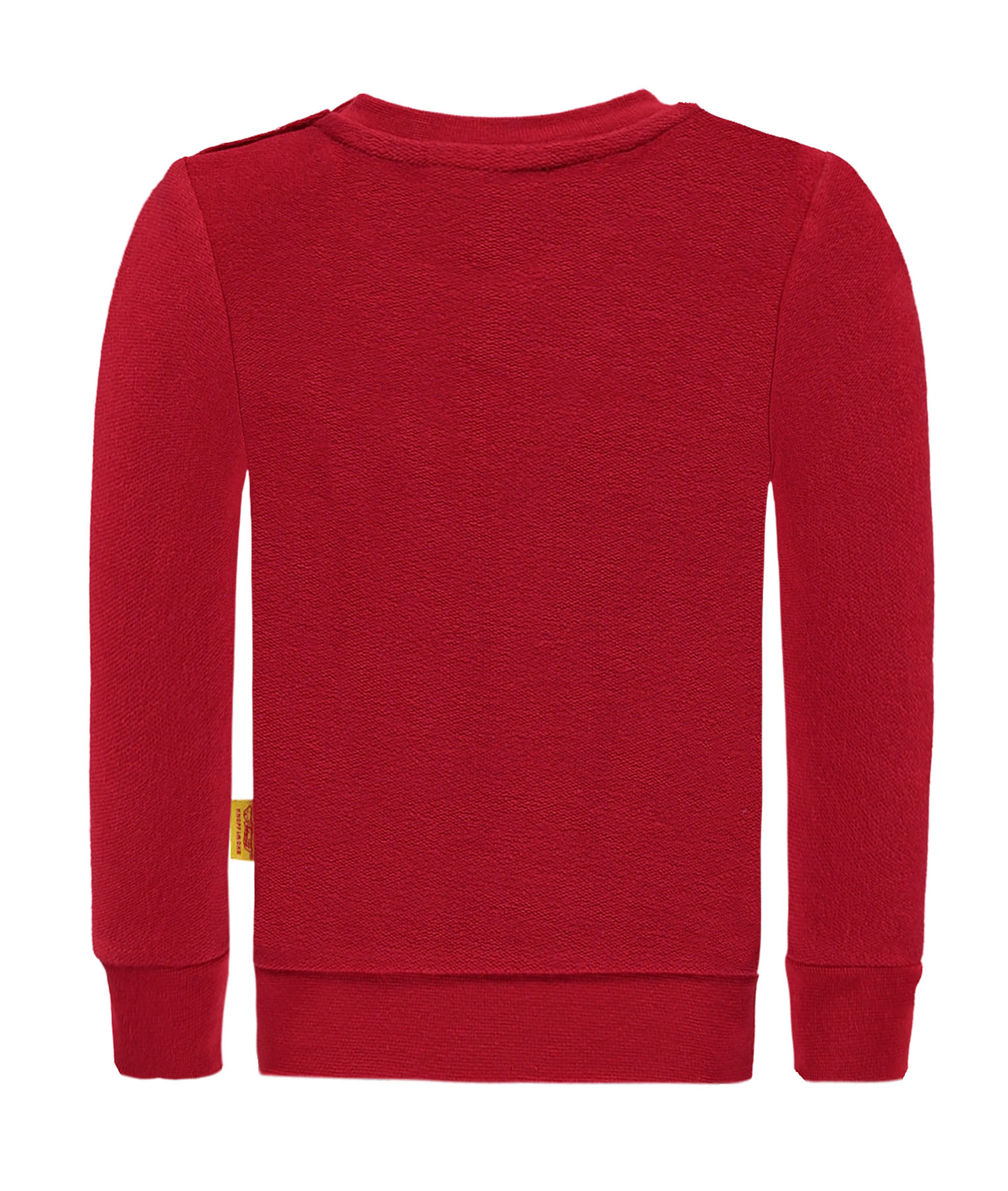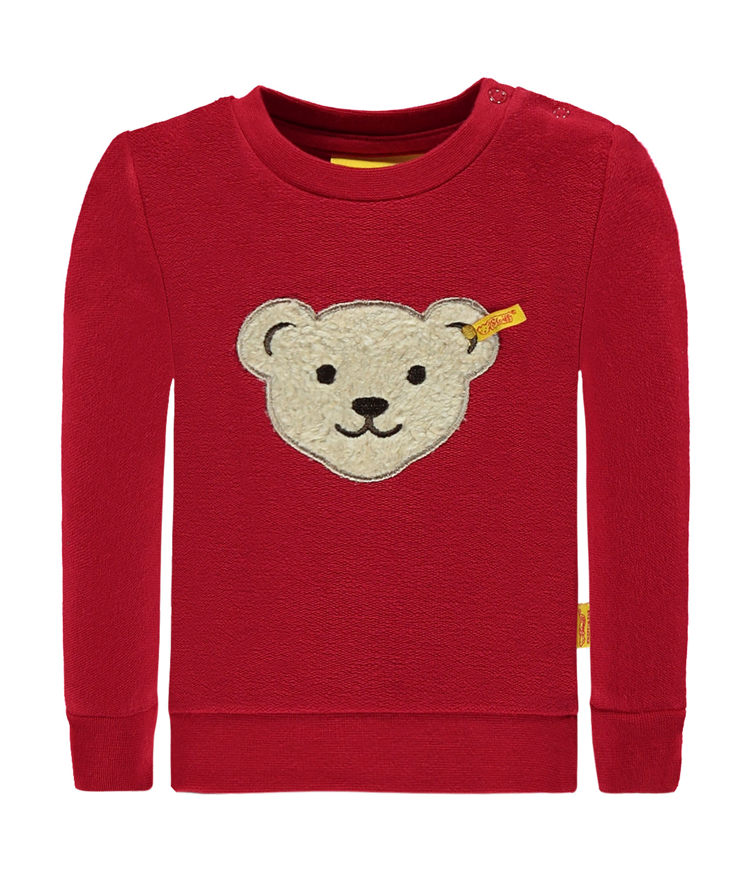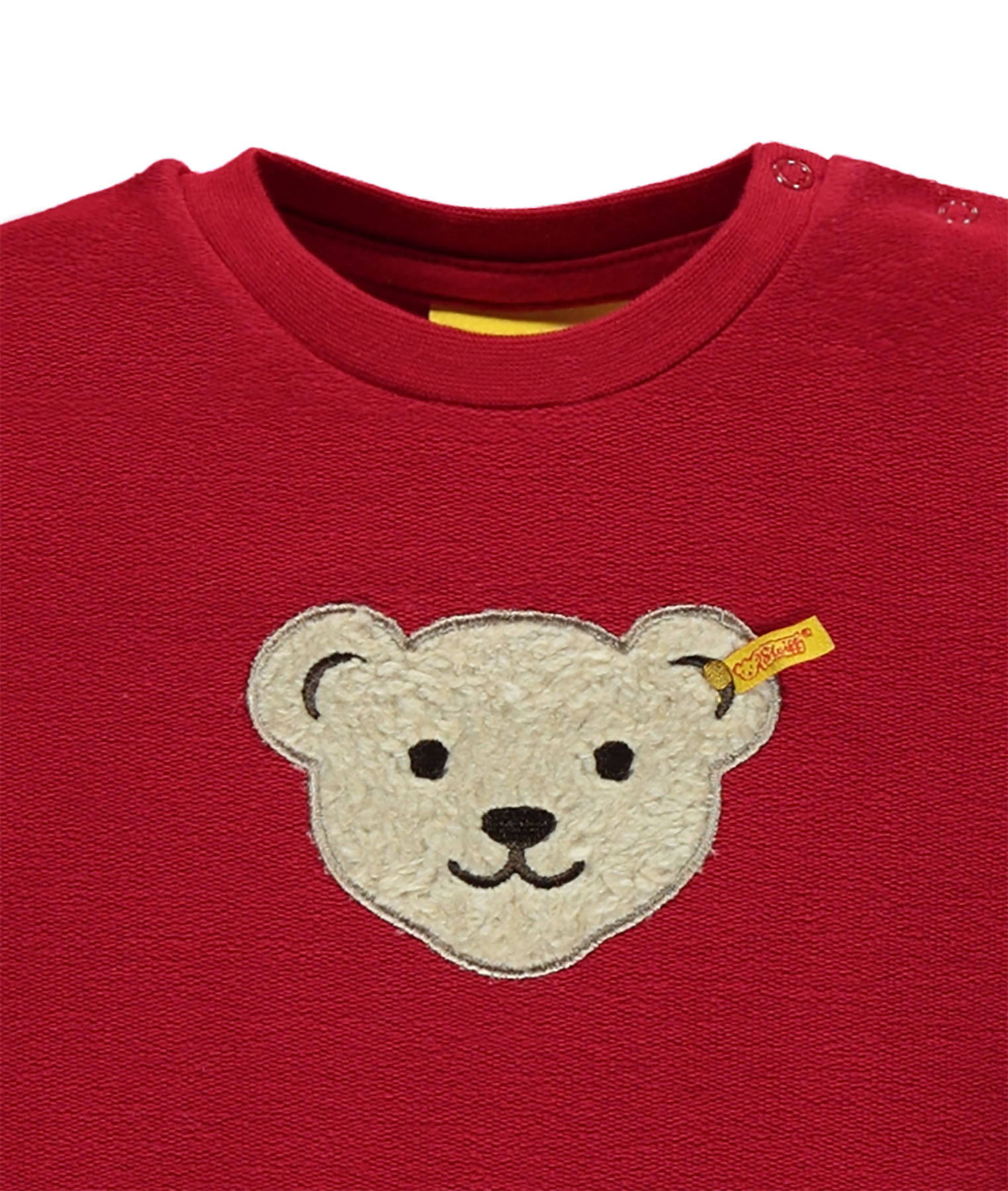 Das wunderschöne Langarmshirt für die kleinen Jungen von Steiff in rot hat ein spannendes Geheimnis: Wenn der große, kuschelige Teddybär liebevoll geknuddelt wird, quietscht er vor Freude. Der eingebaute "Squeaker" ist waschbar. Er benötigt leichten Druck, um sich bemerkbar zu machen, was Dauerquieken sicher ausschließt. Feine Druckknöpfchen am flexiblen Halsausschnitt unterstützen sanft das Anziehen.