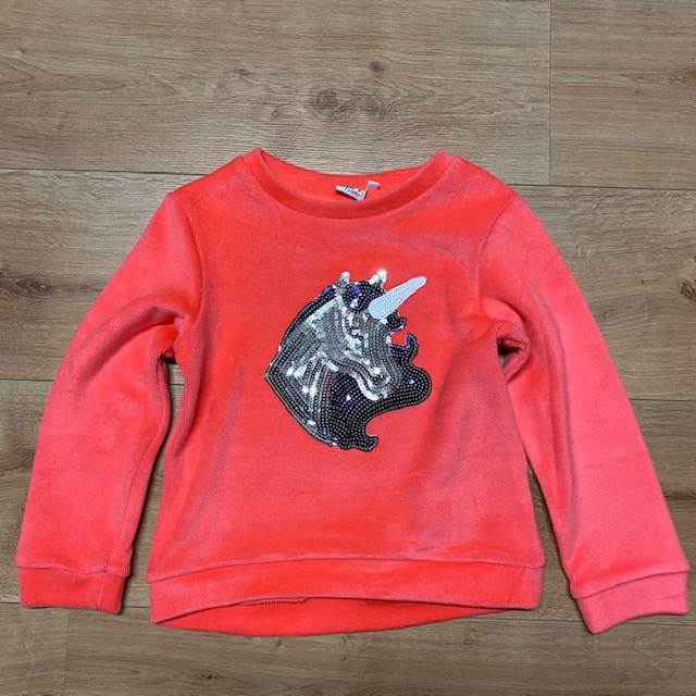 Kuscheliger und warmer Pullover von Topo ganz weich, mit EINHORN aus Pailletten auf der Front.