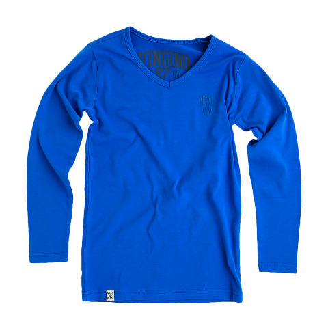 Schönes Basic Langarm-Shirt/Longsleeve von Vingino in blau mit V-Ausschnitt.