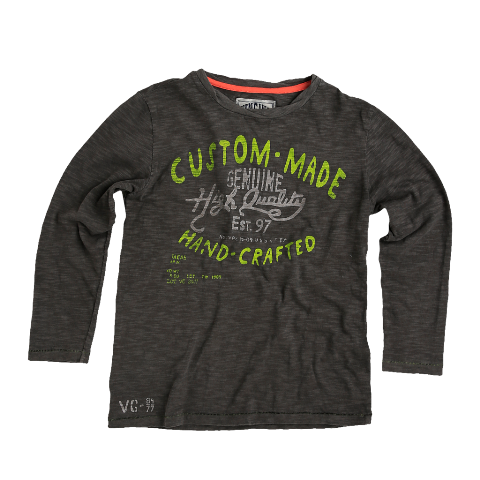 Lässiges Langarm-Shirt/Longsleeve von Vingino in grau, mit used-Waschung und mit Schrift-Front-Print.